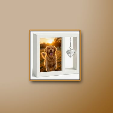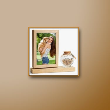 Dog/cat Memorial Gifts for Loss of Dog – Rotating Wooden 4x6 Picture Frame with Fur Keepsake Jar & Writable Name Card.