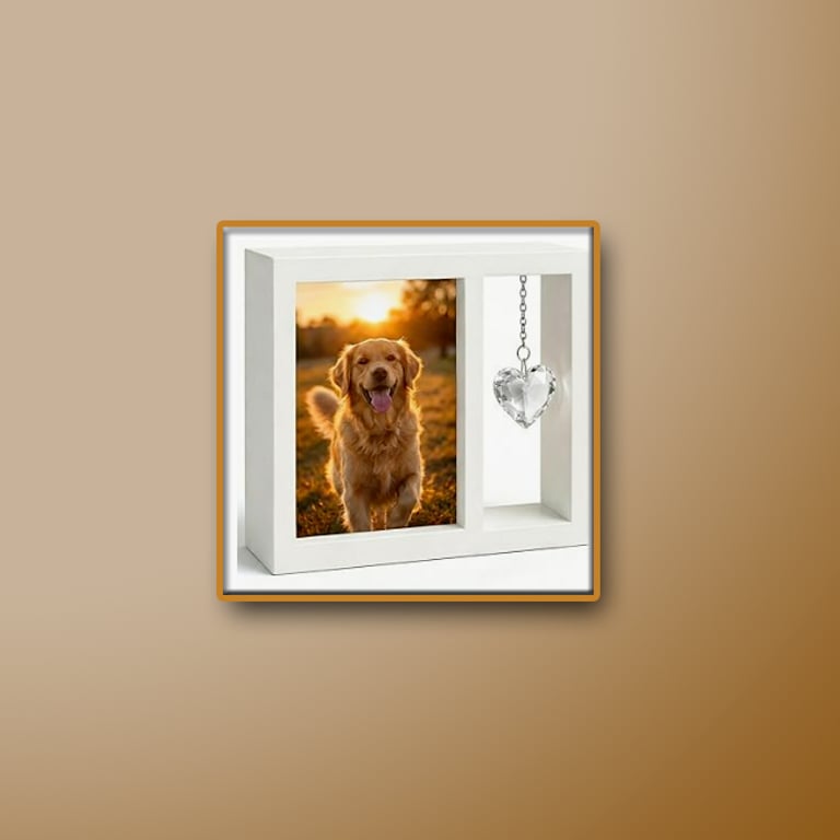 4x6 Wooden Photo Frame with Crystal Heart Suncatcher, Pet Memorial Picture Frame Keepsake