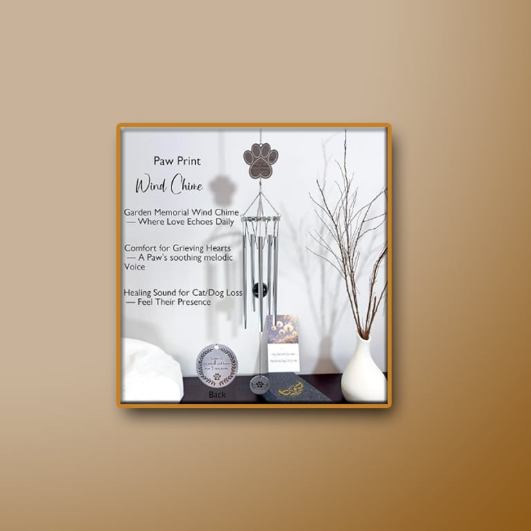 Paw Print Pet Memorial Wind Chime - Sympathy Gifts for Loss of a Dog or Cat, Bereavement Windchimes Outdoor in Memory of Beloved Pet,Pet Memorial Gifts with Keepsake Card