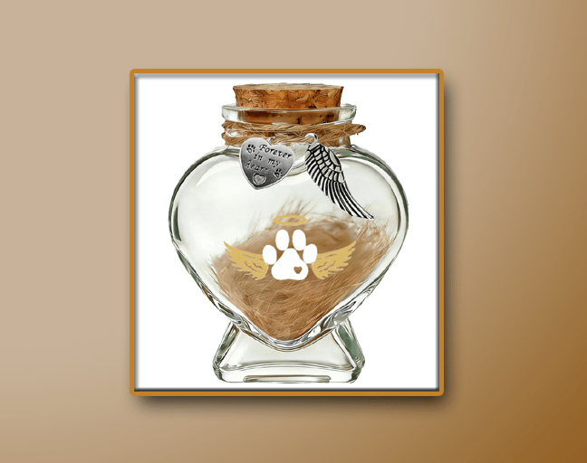 Pet Memorial Hair Keepsake Sympathy Gift for Loss of Dog or Cat, Pet Passing Away Funerary & Bereavement Remembrance Fur Glass Bottle with Heart Shape Ornaments