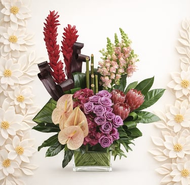 The Heritage Option (Premium Simulated Blooms): An investment in a timeless, lush arrangement designed to last for many seasons.