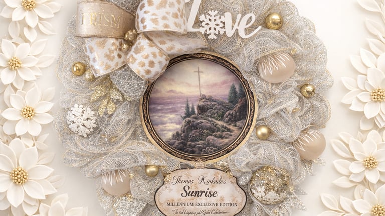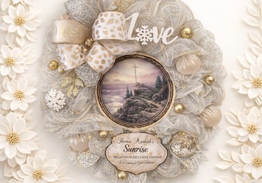 A Warm nostalgic wreath inspired by Thomas Kinkade's Christmas light.