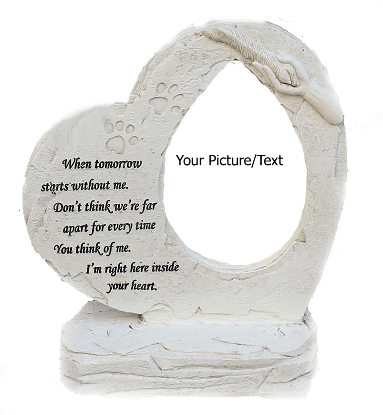 The Heart-Shaped Stone with Picture Inlay is a tender and enduring way to honor a companion who has left a lasting imprint on your life. Designed to be a permanent sanctuary for your favorite memory, this memorial combines resin construction with the delicate beauty of a custom photo inlay. The heart shape serves as a quiet, universal symbol of the unconditional bond you shared—a love that remains even when they are no longer by your side. Whether nestled in a peaceful garden corner or placed on a shelf alongside a favorite toy, this piece provides a dedicated space for reflection and healing.